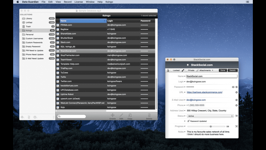 Data Guardian is an application developed by Koingo Software that has been designed with the objective of being able to keep secure any data that you consider private, in such a way that it is practically impossible to view your accounts in different services, your personal lists or any other data that you may consider worthy of being hidden.